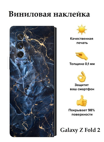 Гидрогелевая пленка на заднюю крышку телефона Galaxy Z Fold 2 с защитой камеры / Защитная пленка для Галакси Зед Фолд 2 с принтом Marble Blue