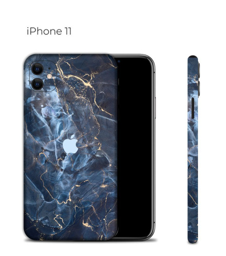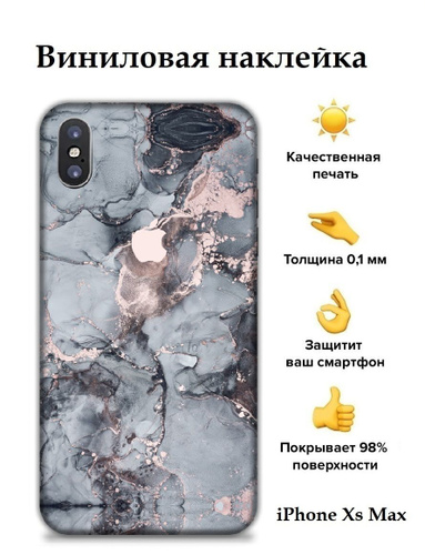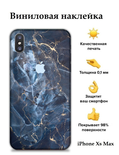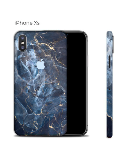 Защитная пленка на Айфон Икс Эс с защитой краёв / Виниловая наклейка на заднюю панель iPhone Xs с принтом MARBLE BLUE