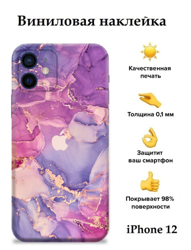 Гидрогелевая пленка на заднюю крышку телефона iPhone 12 с защитой камеры / Защитная пленка для Айфон 12 с принтом Marble Magenta