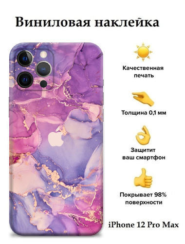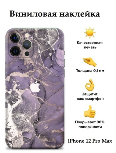 Гидрогелевая пленка на заднюю крышку телефона iPhone 12 Pro Max с защитой камеры / Защитная пленка для Айфон 12 Про Макс с принтом Marble Purple