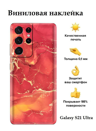Гидрогелевая пленка на заднюю крышку телефона Galaxy S21 Ultra с защитой камеры / Защитная пленка для Галакси С21 Ультра с принтом Marble Red