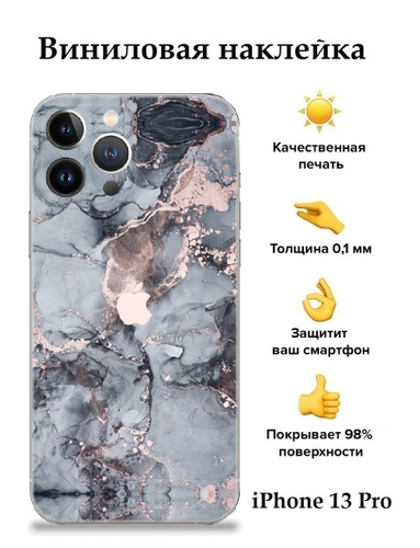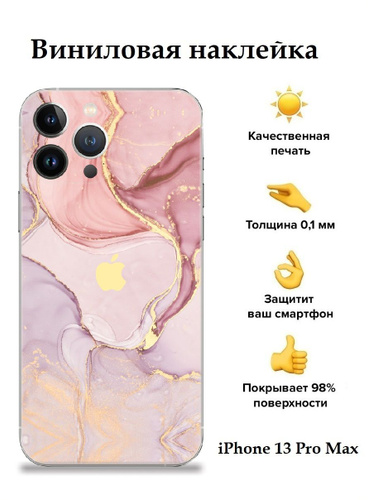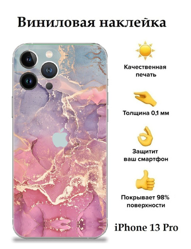 Гидрогелевая пленка на заднюю крышку телефона iPhone 13 Pro с защитой камеры / Защитная пленка для Айфон 13 Про с принтом Marble Pink