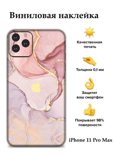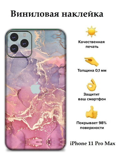 Гидрогелевая пленка на заднюю крышку телефона iPhone 11 Pro Max с защитой камеры / Защитная пленка для Айфон 11 Про Макс с принтом Marble Raspberry