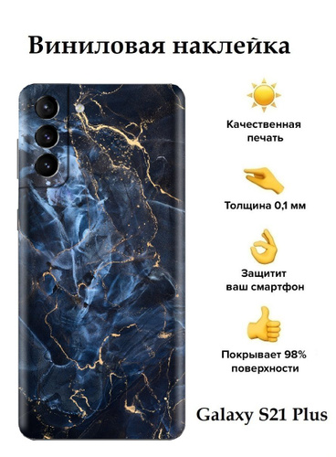Гидрогелевая пленка на заднюю крышку телефона Galaxy S21 + Plus с защитой камеры / Защитная пленка для Галакси С21 + Плюс с принтом Marble Blue