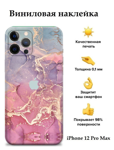 Гидрогелевая пленка на заднюю крышку телефона iPhone 12 Pro Max с защитой камеры / Защитная пленка для Айфон 12 Про Макс с принтом Marble Magenta