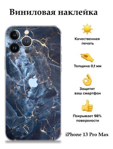 Гидрогелевая пленка на заднюю крышку телефона iPhone 13 Pro Max с защитой камеры / Защитная пленка для Айфон 13 Про Макс с принтом Marble Blue