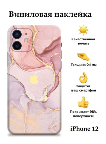Гидрогелевая пленка на заднюю крышку телефона iPhone 12 с защитой камеры / Защитная пленка для Айфон 12 с принтом Marble Pink