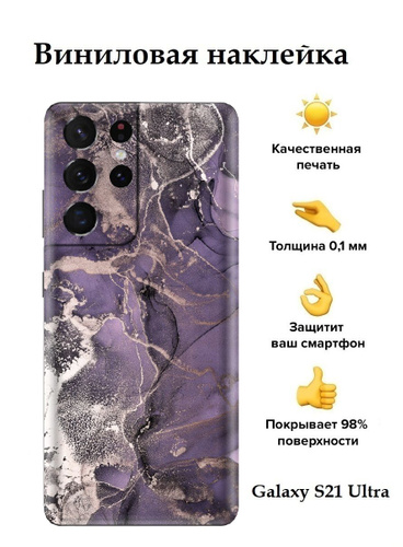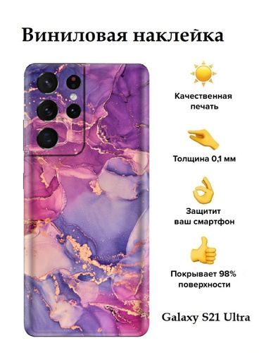 Гидрогелевая пленка на заднюю крышку телефона Galaxy S21 Ultra с защитой камеры / Защитная пленка для Галакси С21 Ультра с принтом Marble Purple