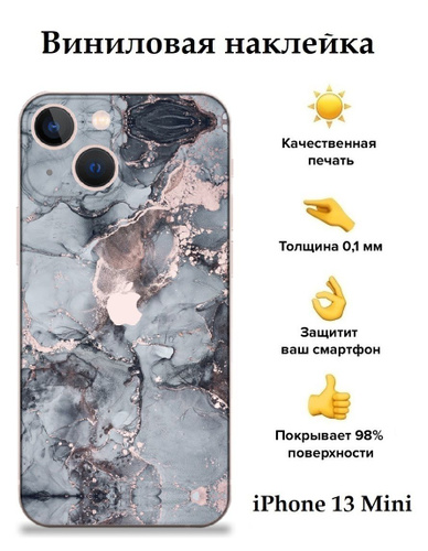 Гидрогелевая пленка на заднюю крышку телефона iPhone 13 Mini с защитой камеры / Защитная пленка для Айфон 13 Мини с принтом Marble Rose