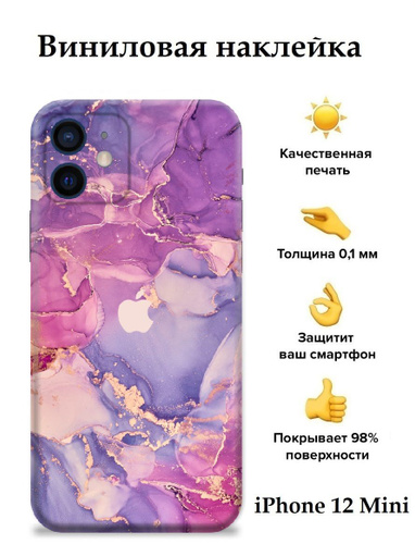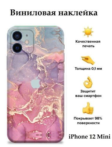 Гидрогелевая пленка на заднюю крышку телефона iPhone 12 Mini с защитой камеры / Защитная пленка для Айфон 12 Мини с принтом Marble Magenta