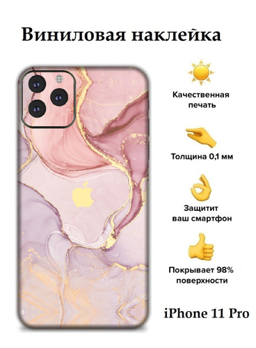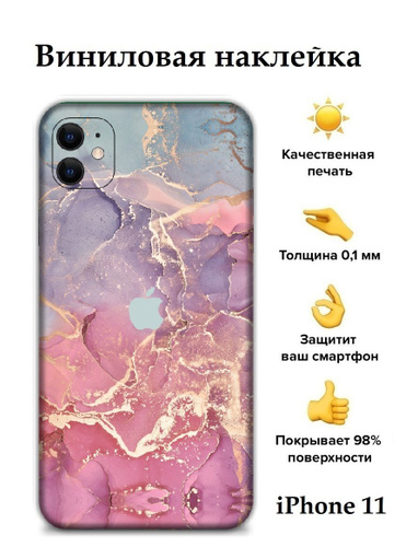 Гидрогелевая пленка на заднюю крышку телефона iPhone 11 с защитой камеры / Защитная пленка для Айфон 11 с принтом Marble Raspberry