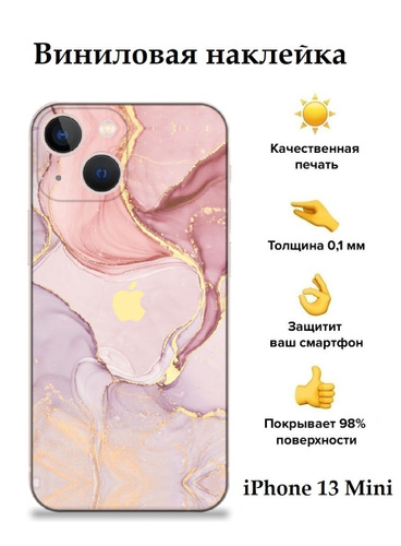 Гидрогелевая пленка на заднюю крышку телефона iPhone 13 Mini с защитой камеры / Защитная пленка для Айфон 13 Мини с принтом Marble Pink