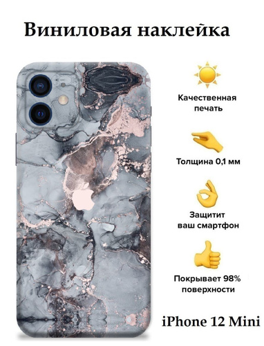 Гидрогелевая пленка на заднюю крышку телефона iPhone 12 Mini с защитой камеры / Защитная пленка для Айфон 12 Мини с принтом Marble Rose