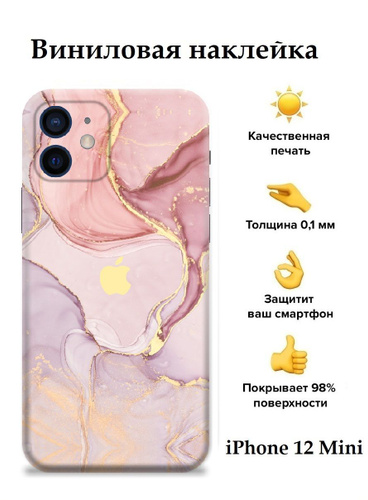 Гидрогелевая пленка на заднюю крышку телефона iPhone 12 Mini с защитой камеры / Защитная пленка для Айфон 12 Мини с принтом Marble Pink