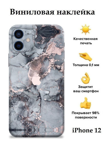 Гидрогелевая пленка на заднюю крышку телефона iPhone 12 с защитой камеры / Защитная пленка для Айфон 12 с принтом Marble Rose