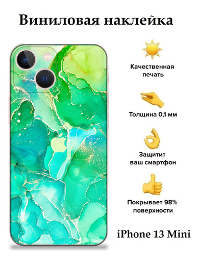 Гидрогелевая пленка на заднюю крышку телефона iPhone 13 Mini с защитой камеры / Защитная пленка для Айфон 13 Мини с принтом Marble Lime