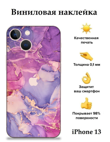 Гидрогелевая пленка на заднюю крышку телефона iPhone 13 с защитой камеры / Защитная пленка для Айфон 13 с принтом Marble Magenta
