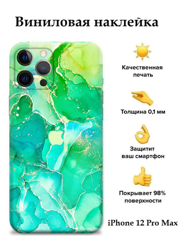 Гидрогелевая пленка на заднюю крышку телефона iPhone 12 Pro Max с защитой камеры / Защитная пленка для Айфон 12 Про Макс с принтом Marble Lime