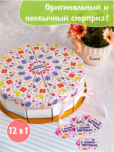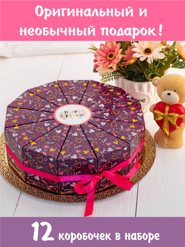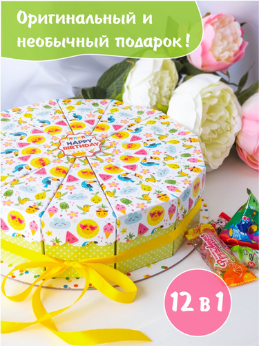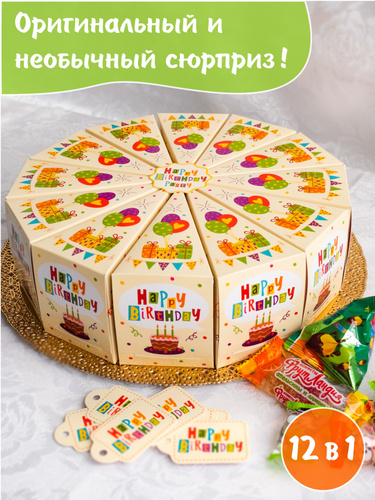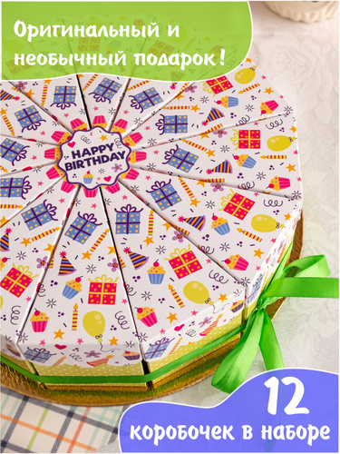 Бумажный торт, 12 коробочек для сладостей, упаковки подарков на день рождения / Сюрприз для детского праздника