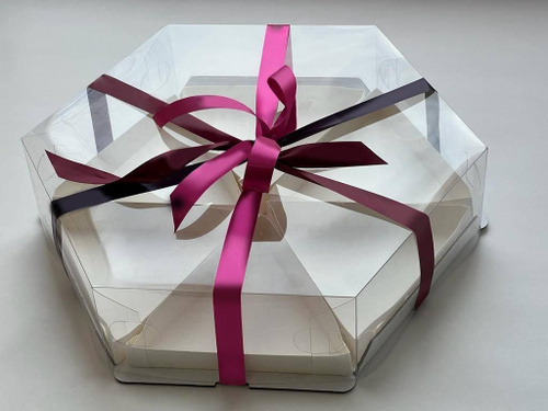 Коробка "шестигранник" под 6 кусочков торта с прозрачным куполом и вкладышами, 240*240*70 мм