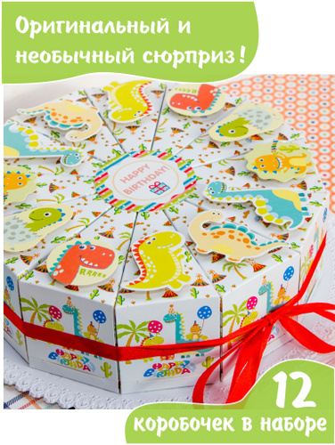 Бумажный торт Динозаврики / Набор из 12 коробочек для упаковки сладких подарков на детский праздник / День рождения мальчика