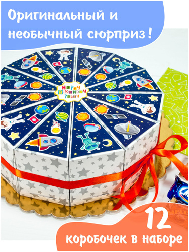 Торт из картона Космос / набор коробочек для упаковки сладостей / угощение на детский праздник / космическая тема / день космонавтики
