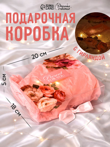 Подарочная коробка "Для тебя"с тишью и гирляндой, 20 х 18 х 5