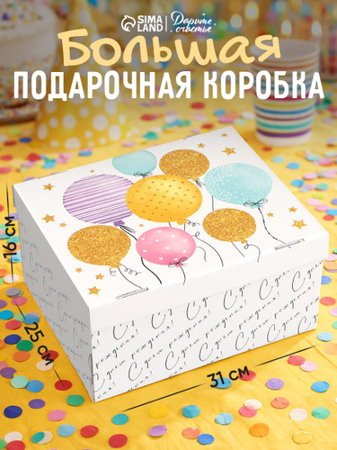 Подарочная коробка "С днём рождения!" , 31 х 25,5 х 16 см