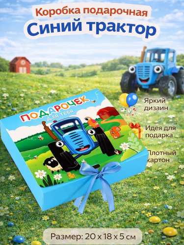 Коробка подарочная детская Синий Трактор, картонная с лентой, 20 х 18 х 5 см