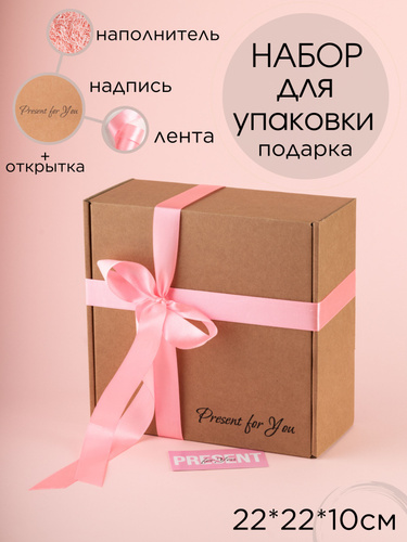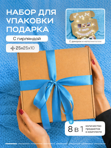 Подарочный набор для упаковки подарка с коробкой и гирляндой из флажков, персональная растяжка с надписью, декор и наполнение