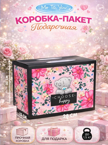 Коробка-пакет подарочный Me To You "Choose happy", размер 28 х 20 х 13 см, для девочек