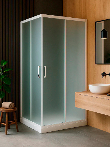 Душевой уголок Royal Bath 85х75х200 закаленное стекло 6 мм матовое профиль белый
