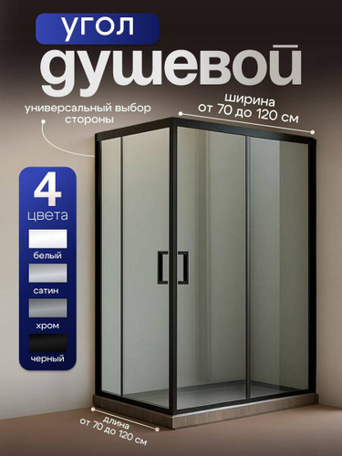 Душевой уголок Royal Bath 75х75х200 закаленное стекло 6 мм прозрачное профиль черный матовый