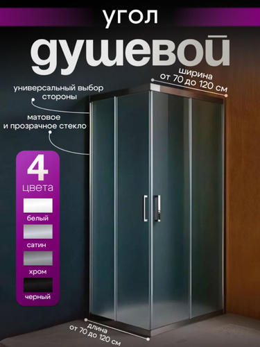 Душевой уголок Royal Bath 75х75х200 закаленное стекло 6 мм матовое профиль хром