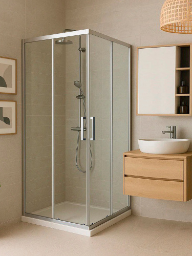Душевой уголок Royal Bath 80х75х200 закаленное стекло 6 мм прозрачное профиль сатин