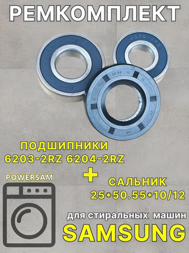 Ремкомплект WHRBC стиральной машины Samsung Самсунг подшипник 6203-2RZ 6204 2RZ сальник 25x50.55x10/12