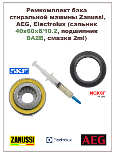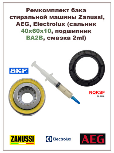Ремкомплект бака стиральной машины Aeg, Electrolux, Zanussi (сальник 40x60x8/10.2, подшипник BA2B, смазка)