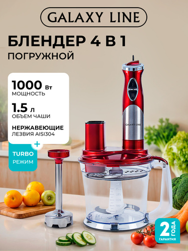 Блендер погружной Galaxy LINE GL2133 (1000 Вт, 2 насадки с мерным стаканом, V мерного стакана 600 мл ) / универсальный прибор