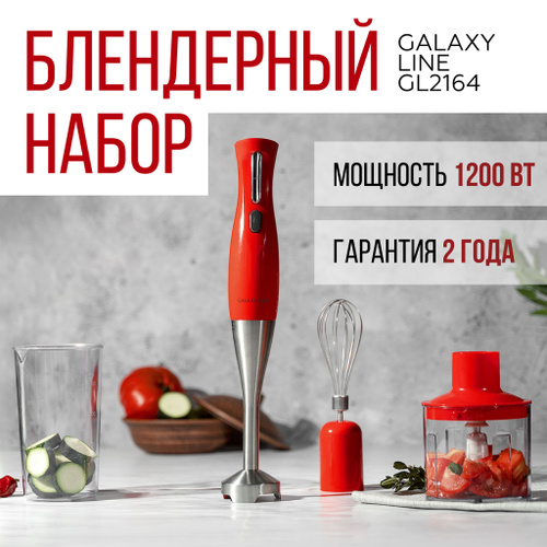 Блендер GALAXY LINE GL2164 красный ( 1200 Вт, мерный стакан 0.7 л, 3 насадки ) для кухни / подарок маме