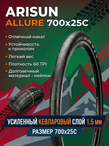 Покрышка для велосипеда 28" (700x25C) ARISUN ALLURE, ROAD, ND, Антипрокол, FOLDING, Aramid, 60 TPI,