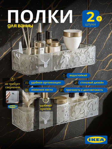 IKEA полки для ванной и кухни 2 шт, настенные самоклеящиеся полки без сверления для душа