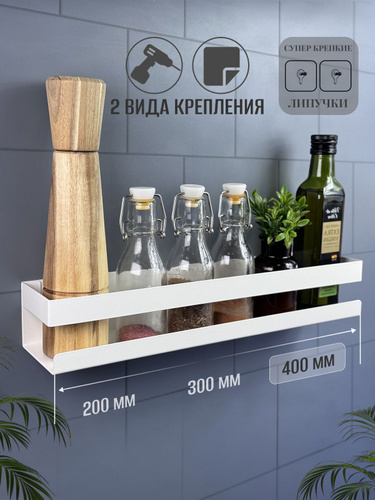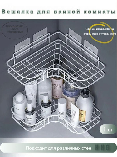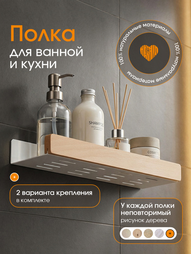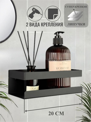 Полка для ванной комнаты настенная на присосках, полочка на липучках навесная, пластиковая без сверления