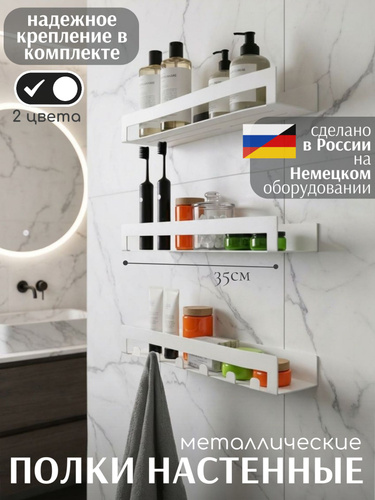 Полка для ванной Настенная Прямая, 15.5х35х9 см, 2 шт.
