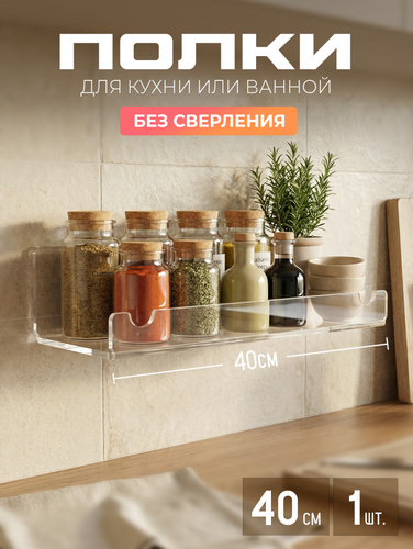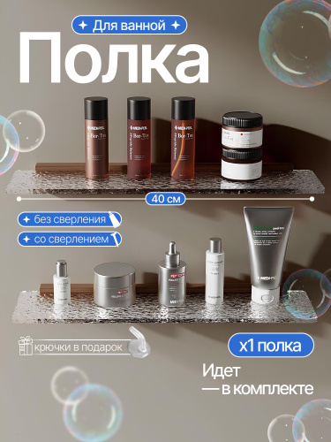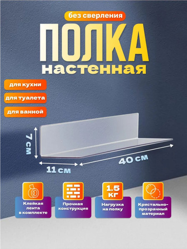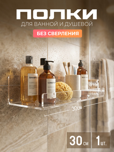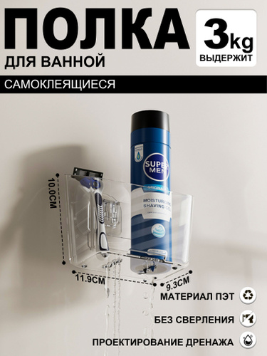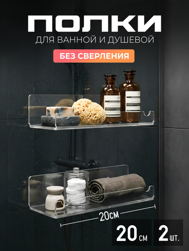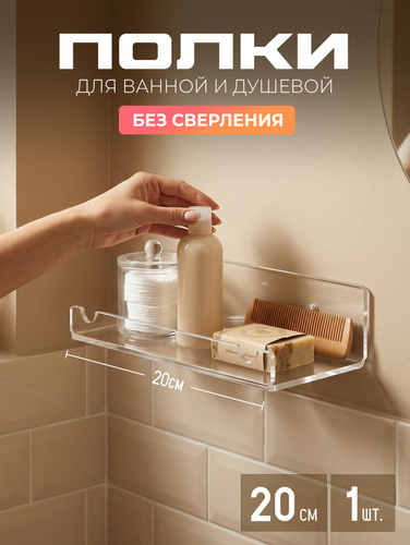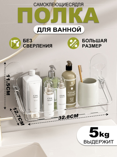 Полка для ванной настенная прозрачная, самоклеящаяся, без сверления