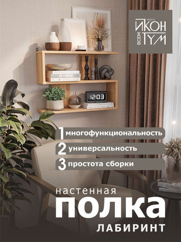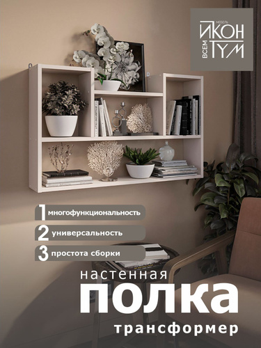 ИКОНТУМ Полка Настенная Прямая, 90х16х55 см, 1 шт.