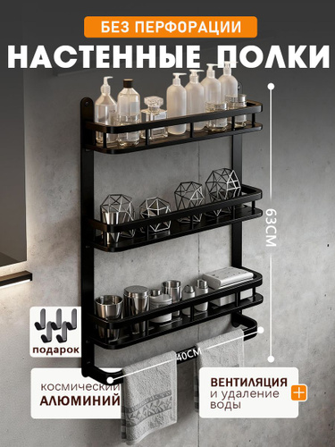 Полка для ванной и аксессуары для ванной комнаты, без сверления космический алюминий
