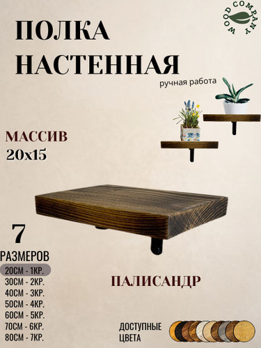 Полка для цветов настенная навесная деревянная 20*15*2,5см палисандр, G-кр