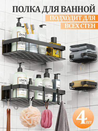 Полка для ванной многоярусная 4 штуки стойка для косметики, зубных щеток, шампуней, влагостойкая