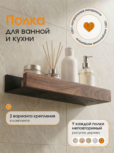 Полка для ванной настенная 30 см, 1 шт., черная, Schwarz Haus