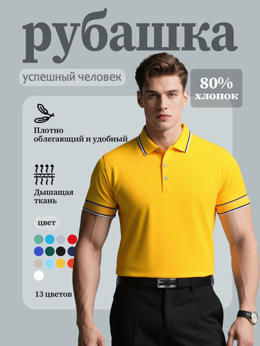 Поло Классическая деловая футболка-поло с короткими рукавами и отворотом